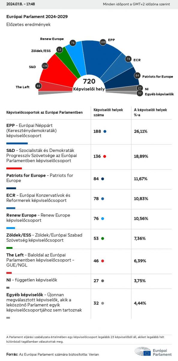 Az Európai Parlament összetétele a rendelkezésre álló előzetes vagy végleges tagállami eredmények alapján, a távozó parlament szerkezetét figyelembe véve, miután a szavazás minden tagállamban lezárult.