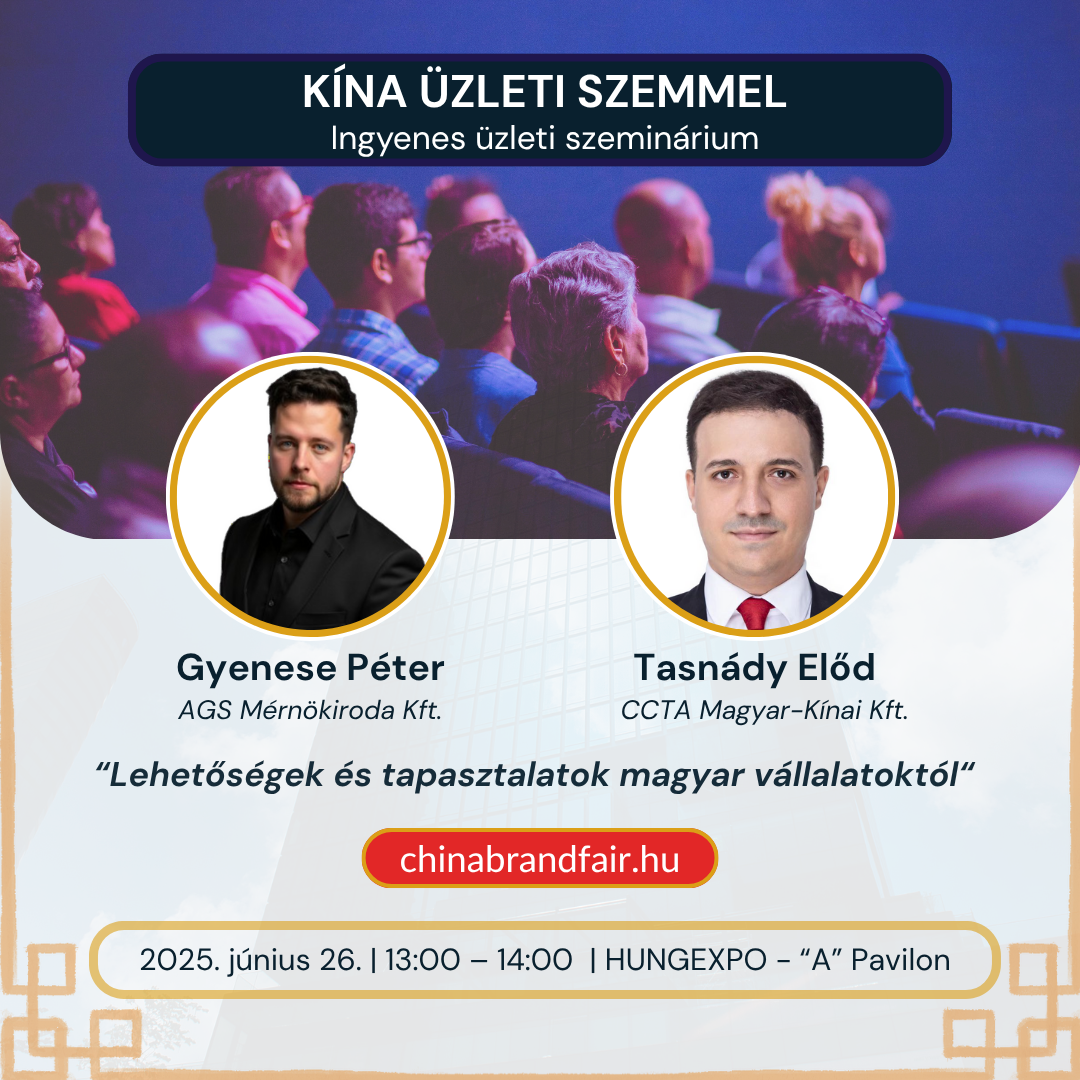 A China Brand Fair 2025. június 26-28. között kerül megrendezésre a Hungexpo „A” Pavilonjában. Az esemény egyedülálló lehetőséget kínál arra, hogy új kínai beszállítókat találjon, bővítse termékkínálatát és sikeres üzleti kapcsolatokat alakítson ki. A rendezvény ideális platform a legújabb iparági trendek megismerésére, miközben közvetlenül tárgyalhat a legnagyobb kínai gyártókkal.